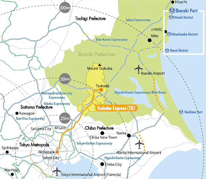 Just 45 minutes from Tokyo by train, and close to Narita International Airport, Tsukuba City is the heartland of Japan's strategic R&D. The region has the densest accumulation of science technology in all of Japan, with approximately 150 public and private institutions and enterprises, and more than 30% of the nation's research and education facilities – including RIKEN (Japan’s largest comprehensive research institution), and the National Institute of Advanced Industrial Science & Technology (AIST).